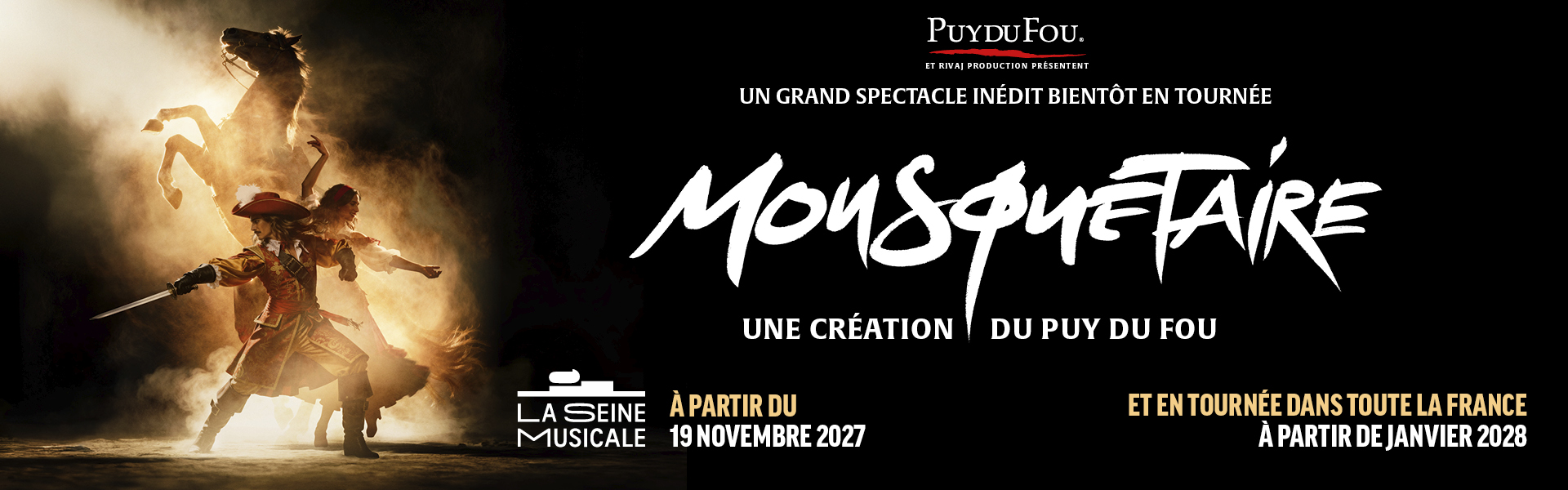 Le Puy du Fou dévoile Mousquetaire coproduit par le Puy du Fou et RIVAJ Production. Ce spectacle inédit sera présenté pour la première fois à la Seine Musicale en novembre 2027 puis ira à la rencontre du public dans toutes les villes de France dès janvier 2028.
